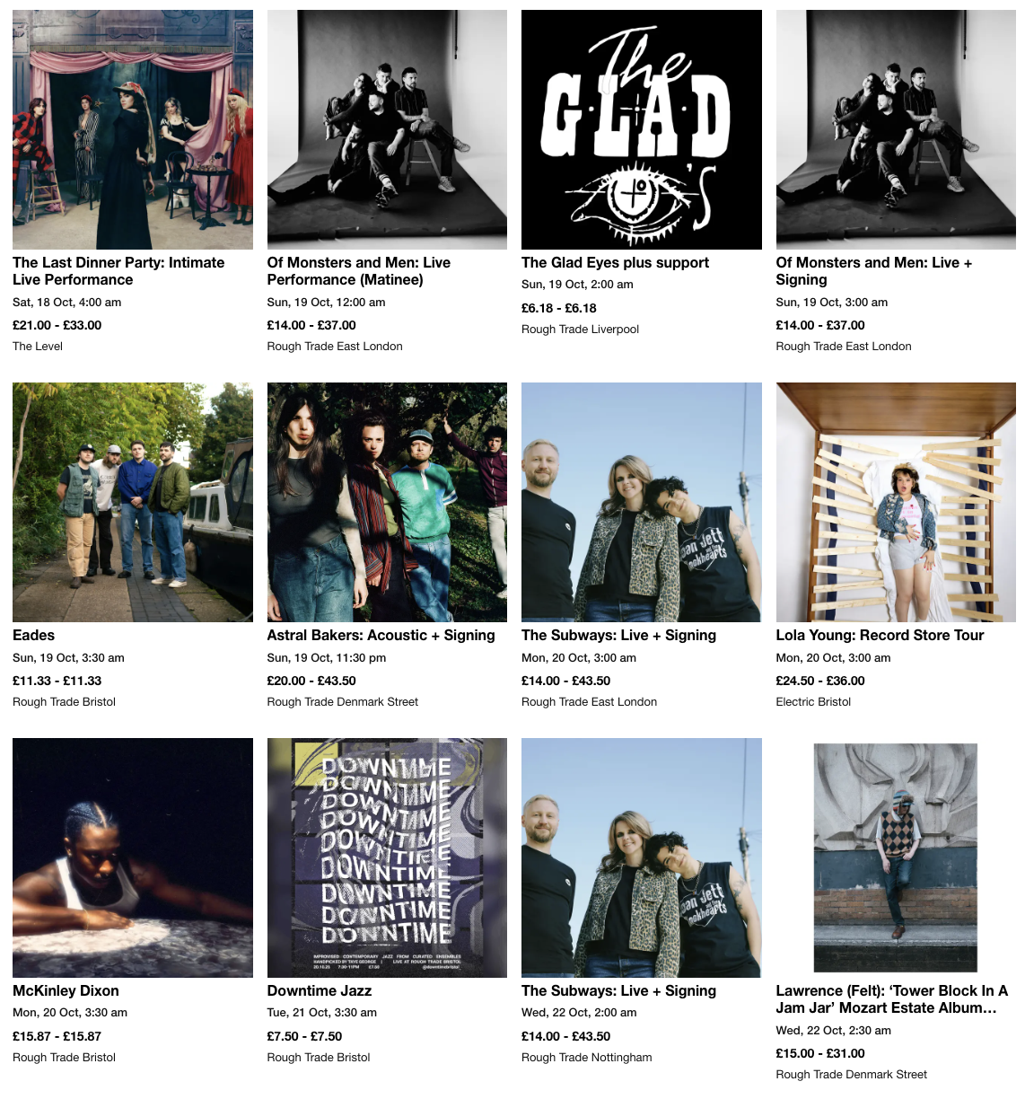 Rough Trade의 10월 공연 라인업. 정말 화려하지 않나요? |