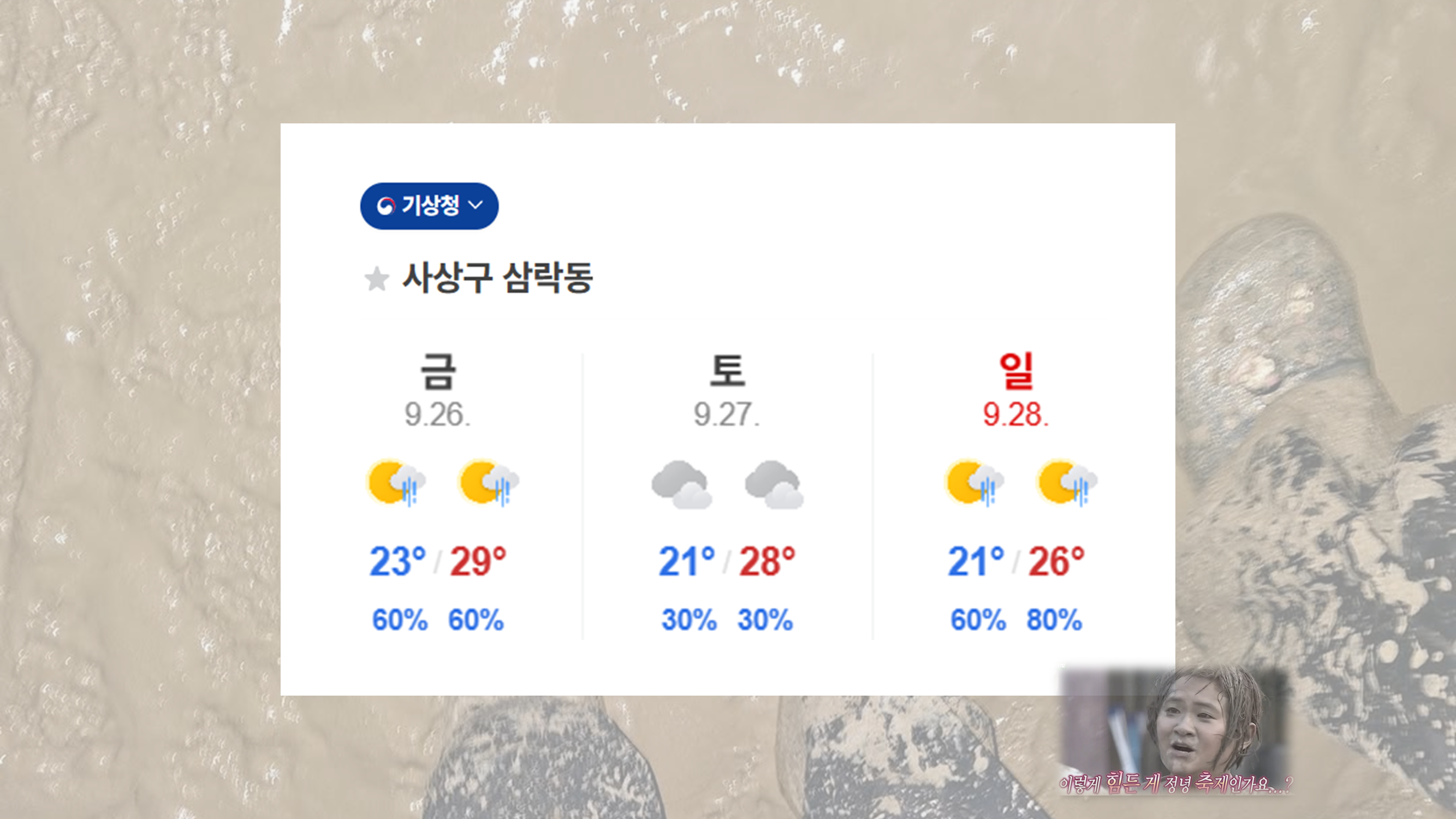 올해 마지막 대형 락 페스티벌, 부산국제록페스티벌(부락)이 벌써 이번 주로 다가왔습니다. 라인업은 “사상구를 팔았나요?”라는 말이 나올 정도로 3일이 풍성하게 채워졌죠. 폭염 걱정 없이 선선한 날씨 속에서 즐길 수 있겠다 싶었지만… 일기예보에 따르면 금요일과 일요일의 부산에는 60%, 80% 확률로 비 소식이 있습니다.😇 그러고 보면 작년 부락에서도 마지막 날 비가 내려 바닥이 온통 진흙탕이 됐고, 일요일 헤드라이너 엘르가든 공연이 끝난 뒤엔 진흙으로 범벅된 신발들의 인증샷이 쏟아졌던 기억이 납니다. 이번 주 부산으로 향하는 분들이라면 우중 락페에 대비하시길 추천드리며, 진흙밭에 굴하지 않고 삼락에서의 락놀이 가봅시다. |