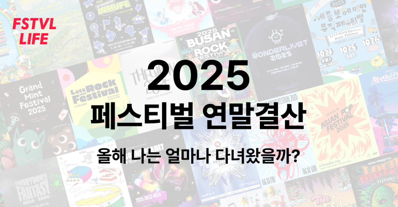 지난주 페스티벌라이프에서는 누구나 참여할 수 있는 <2025 페스티벌 연말결산> 페이지를 오픈했습니다! 올해 다녀온 페스티벌을 선택하면 내가 다녀온 페스티벌 개수와 월별 기록, 올해 최고의 페스티벌은 물론 페스티벌에 쓴 시간과 비용까지 한눈에 볼 수 있어요. 비용은 살짝 회피하고 싶기도 하지만😂 때로는 이런 데이터가 가장 진한 마음을 말해주기도 하니까요. 올해 페스티벌 좀 다녀왔다 싶은 분이라면 참여해보세요.